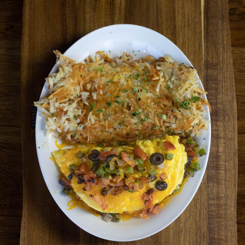 Served with a choice of pan-fried breakfast potatoes or hash browns and toast.